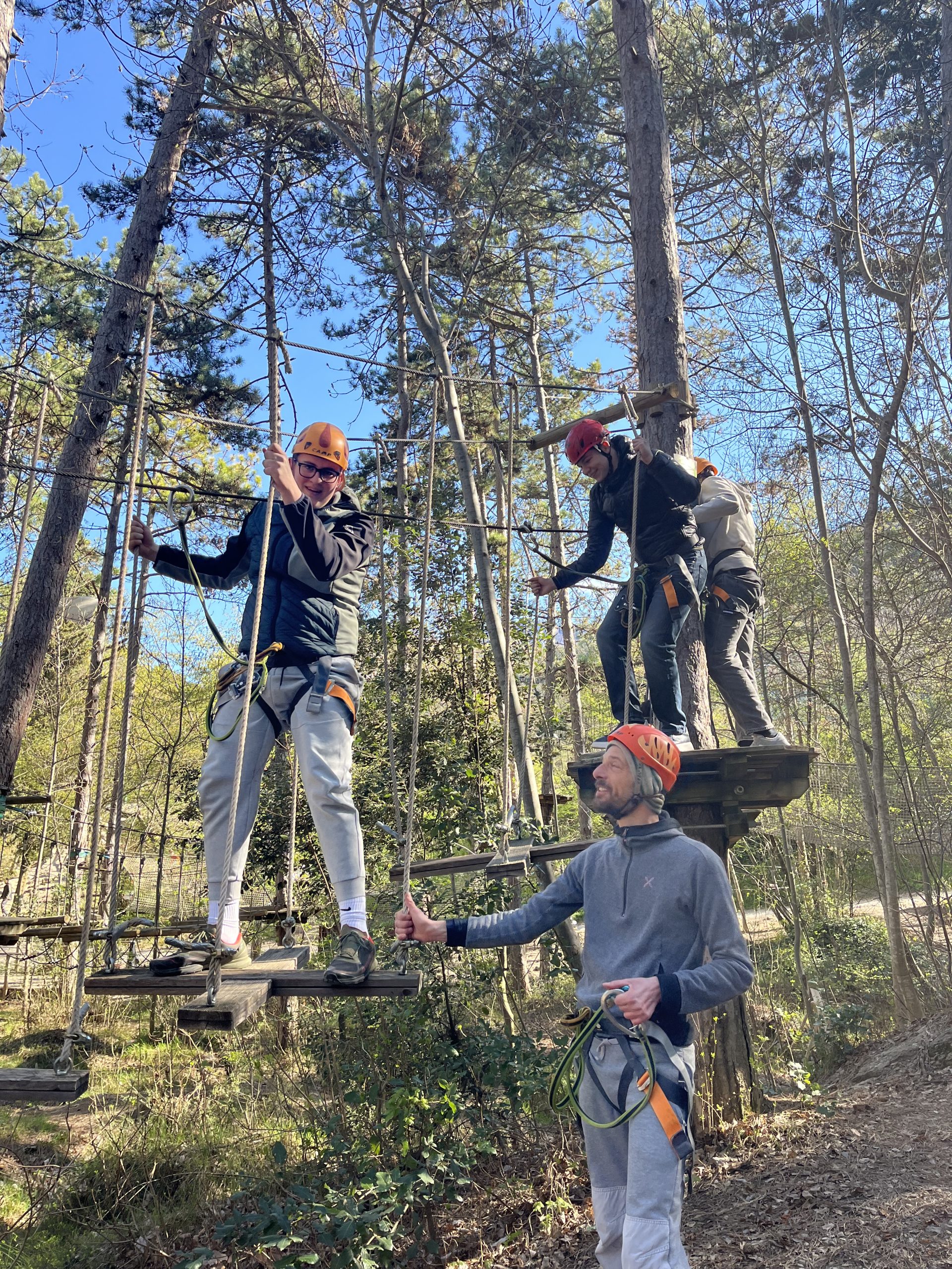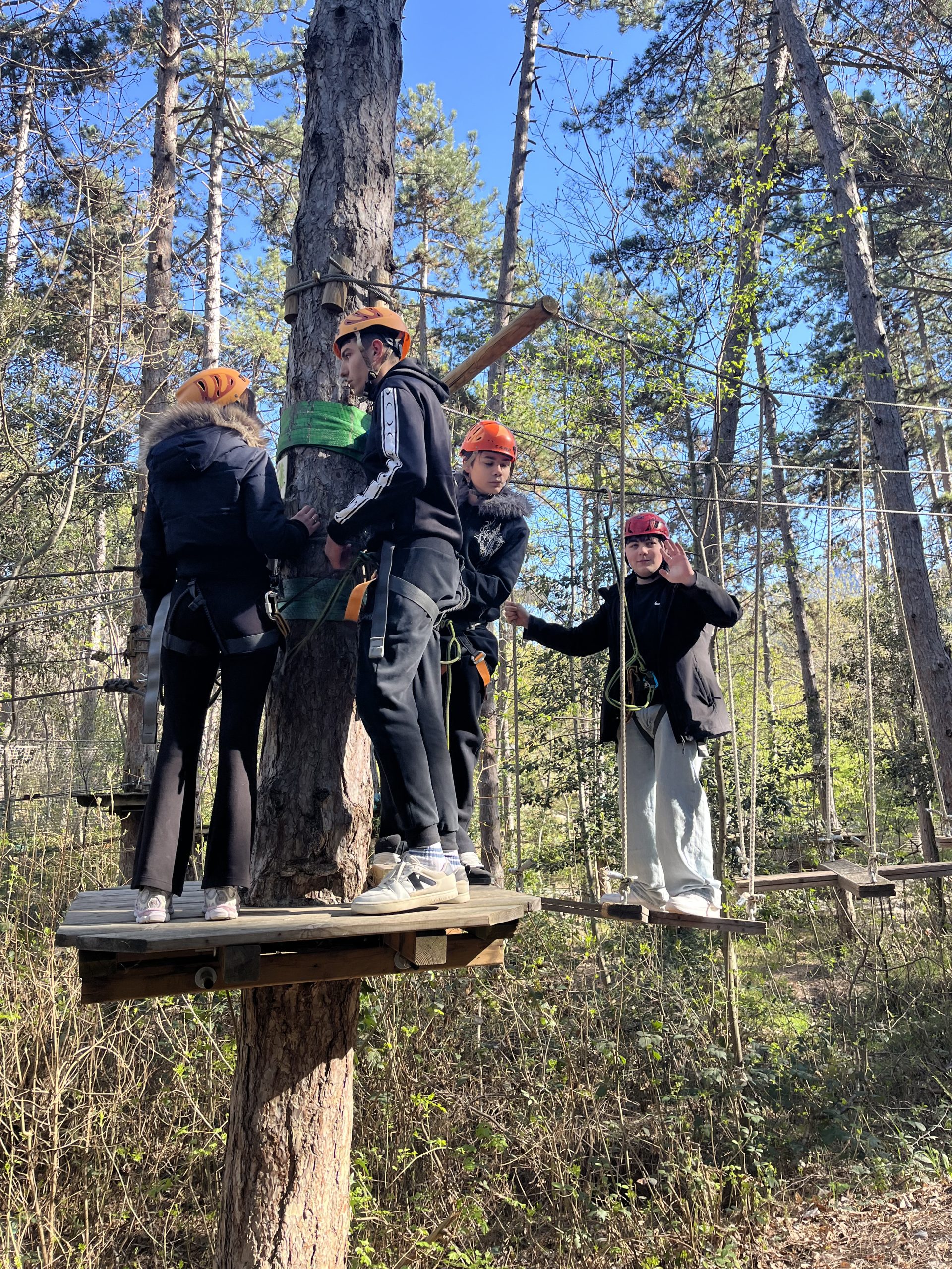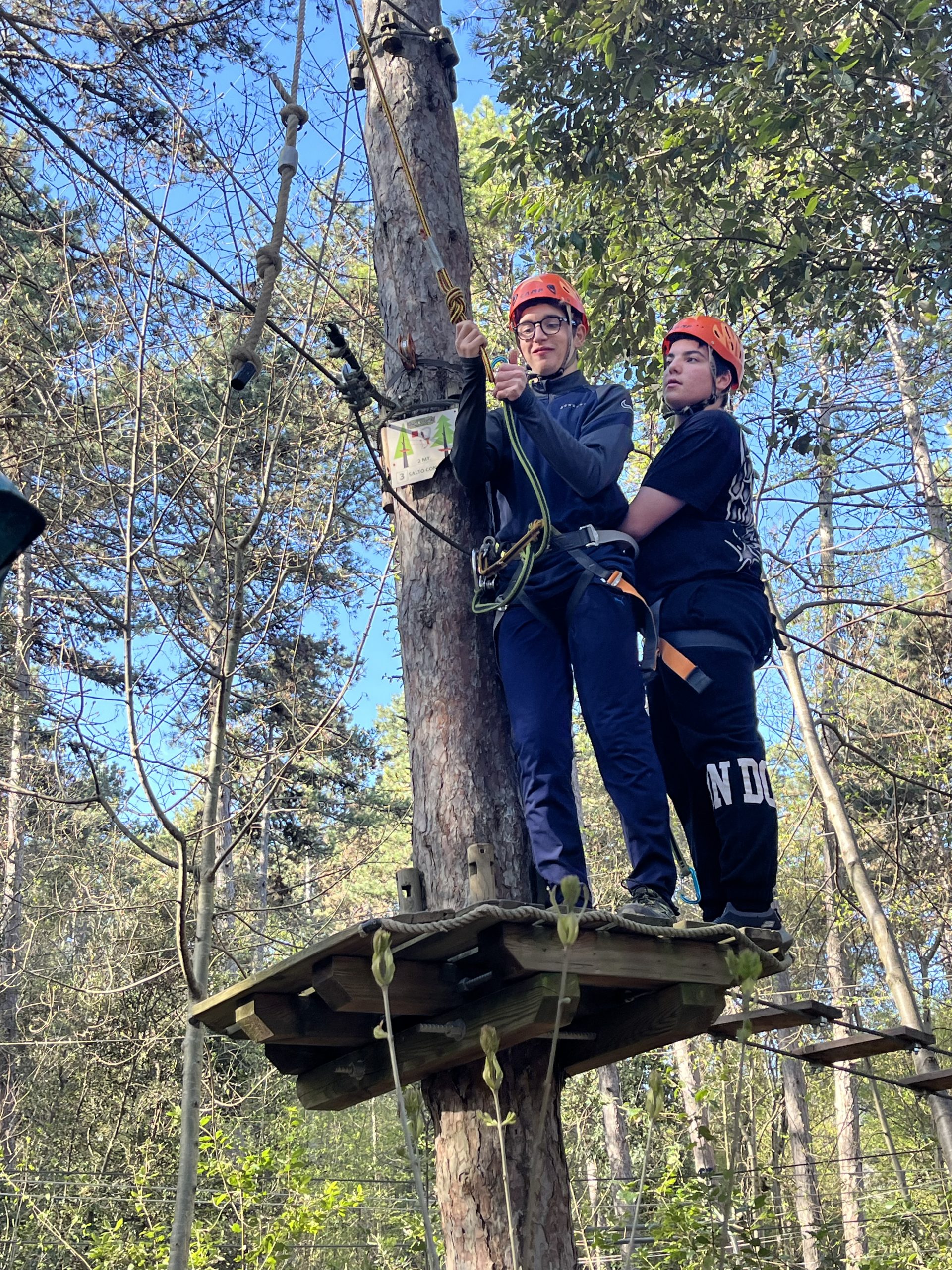 La mattinata è iniziata subito nel vivo dell’azione presso il parco avventura di Torbole. Tra ponti tibetani, carrucole e percorsi sospesi tra i pini, i ragazzi hanno messo alla prova equilibrio e coraggio, vivendo un momento di stacco totale dalla routine delle lezioni e dei laboratori. È stata l’occasione perfetta per fare squadra e divertirsi insieme immersi nel verde.